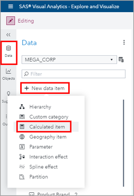 From the Data pane, use the New data item menu and select Calculated item.