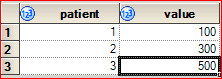 create table want as select a.* from have as a left join have as b on (a.patient=b.patient and a.value le b.value) group by a.patient,a.value